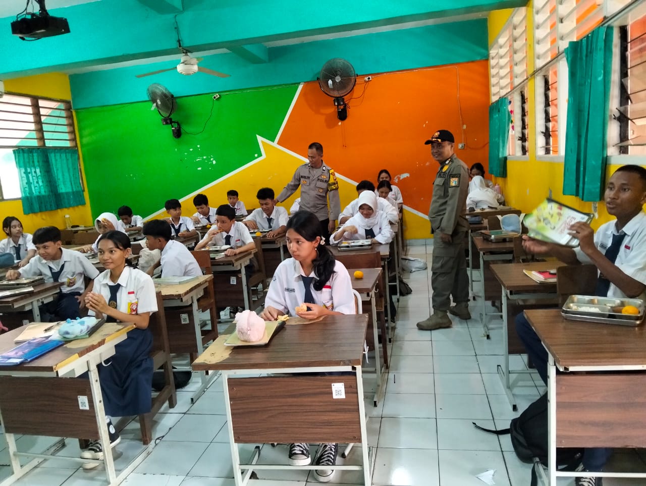 Nasional.id, Jakarta – Bhabinkamtibmas Kelurahan Cipinang Cempedak, Aiptu Muslih, bersama Satpol PP Kelurahan Cipinang Cempedak melakukan pengecekan langsung pendistribusian Makanan Bergizi Gratis (MBG) di SMPN 36 Jakarta, Selasa (30-09-2025) siang.