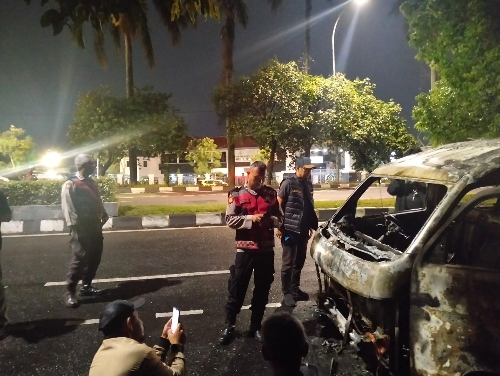 Sekitar pukul 22.45 WIB, satu unit mobil pemadam kebakaran yang dipimpin Bapak Sopian tiba di lokasi. Namun, api sudah membesar dan melahap seluruh bagian kendaraan. Petugas baru berhasil memadamkan api sepenuhnya sekitar pukul 23.00 WIB.