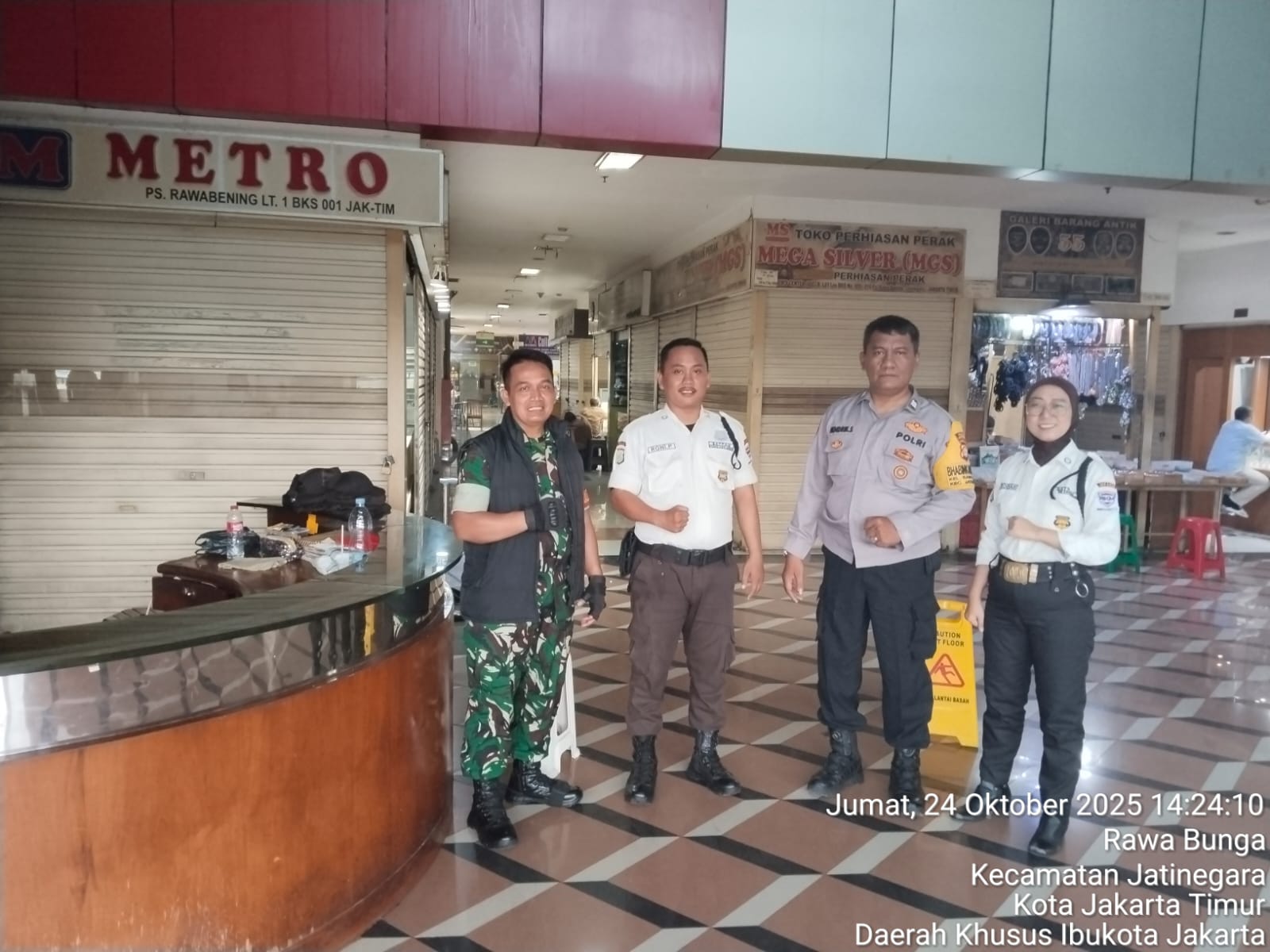 Nasional.id, Jakarta – Dalam rangka mendukung Program Mantap dan Taktis yang digagas Kapolres Metro Jakarta Timur, Kombes Pol Dr. Alfian Nurrizal, S.H., S.I.K., M.Hum., Bhabinkamtibmas Kelurahan Rawa Bunga Aiptu Hendrik S. bersama Babinsa melaksanakan kegiatan sambang dan pembinaan keamanan swakarsa (Binkamsa) di kawasan Gems Center, Jatinegara Barat, pada Jumat (24/10/2025) siang.