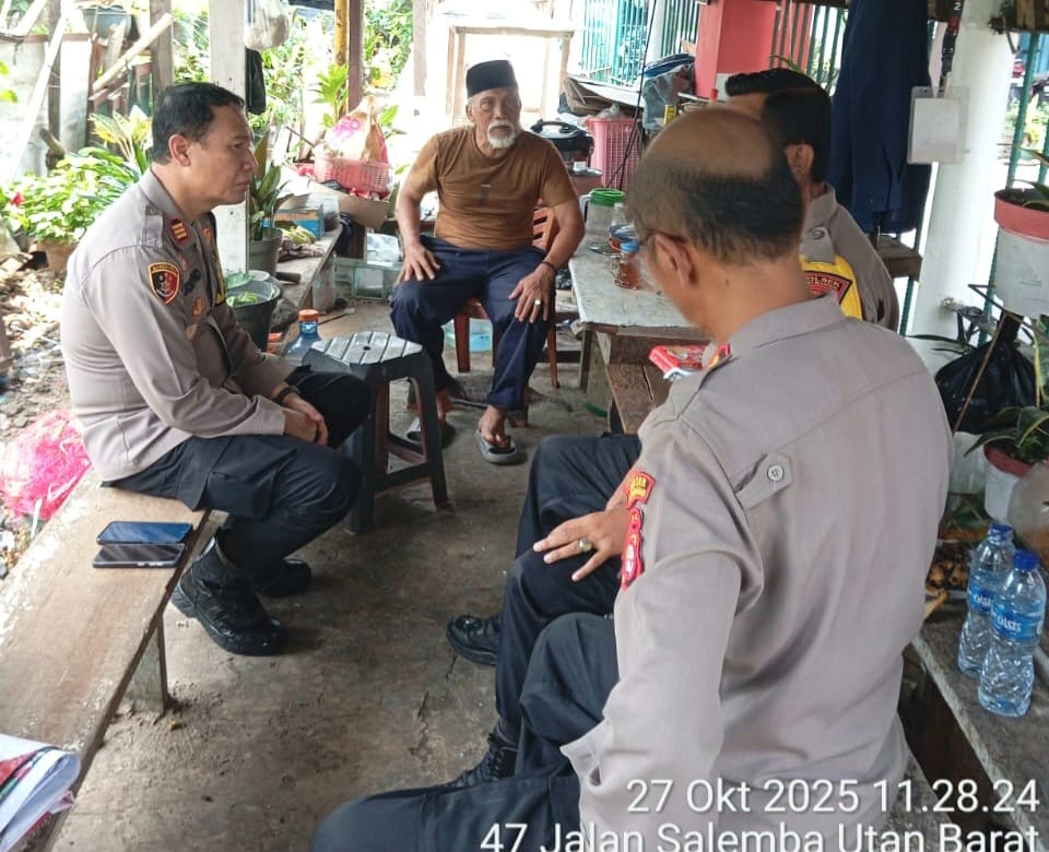 Nasional.id, Jakarta – Kapolsek Matraman AKP Suripno, S.H., M.H. didampingi Kanit Binmas Iptu Atmir dan Bhabinkamtibmas Kelurahan Palmeriam Aipda Erwin melaksanakan kegiatan sambang dialogis bersama Ketua RW 07, Bapak Edi Lemi, di Jalan Salemba Utan Barat RT 13/RW 07, Kelurahan Palmeriam, Kecamatan Matraman, Jakarta Timur, Senin (27/10/2025).
