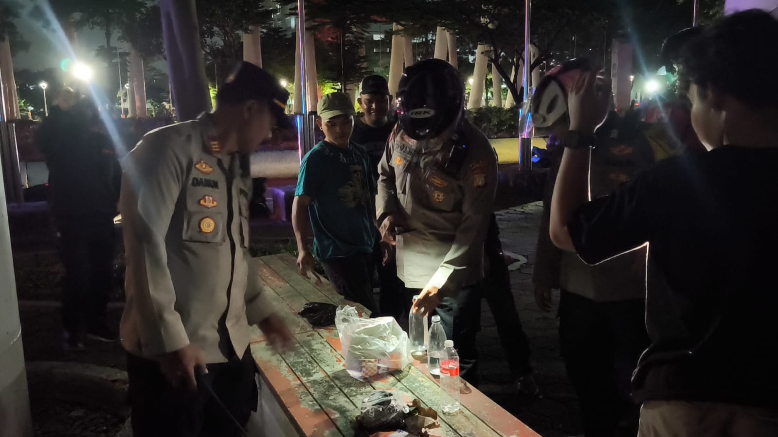 Dalam kegiatan tersebut, petugas menemukan sekelompok pemuda yang mengonsumsi minuman keras di Taman Gading Kemayoran, Jl. Benyamin Sueb.