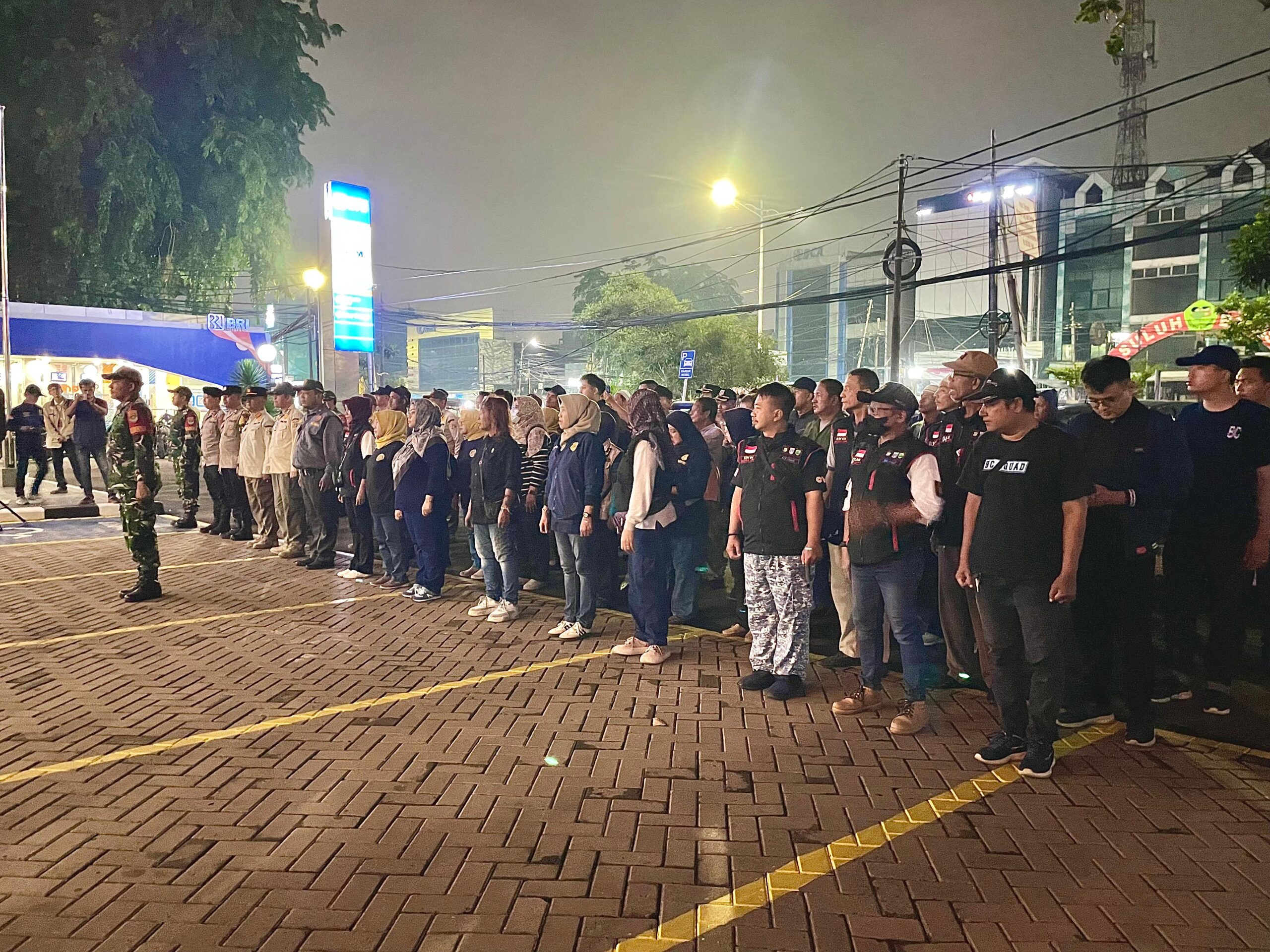 Kegiatan berlangsung pada Sabtu malam pukul 22.30 WIB di halaman Kantor Bank BRI, Jl. Otista Raya No.72, Bidaracina, Jatinegara. Apel dipimpin Kapolsek Jatinegara Kompol Samsono, S.H., M.H., didampingi Danramil Jatinegara Mayor Arm Sianturi dan Camat Jatinegara Ibu Endang Kartika, S.Ap.