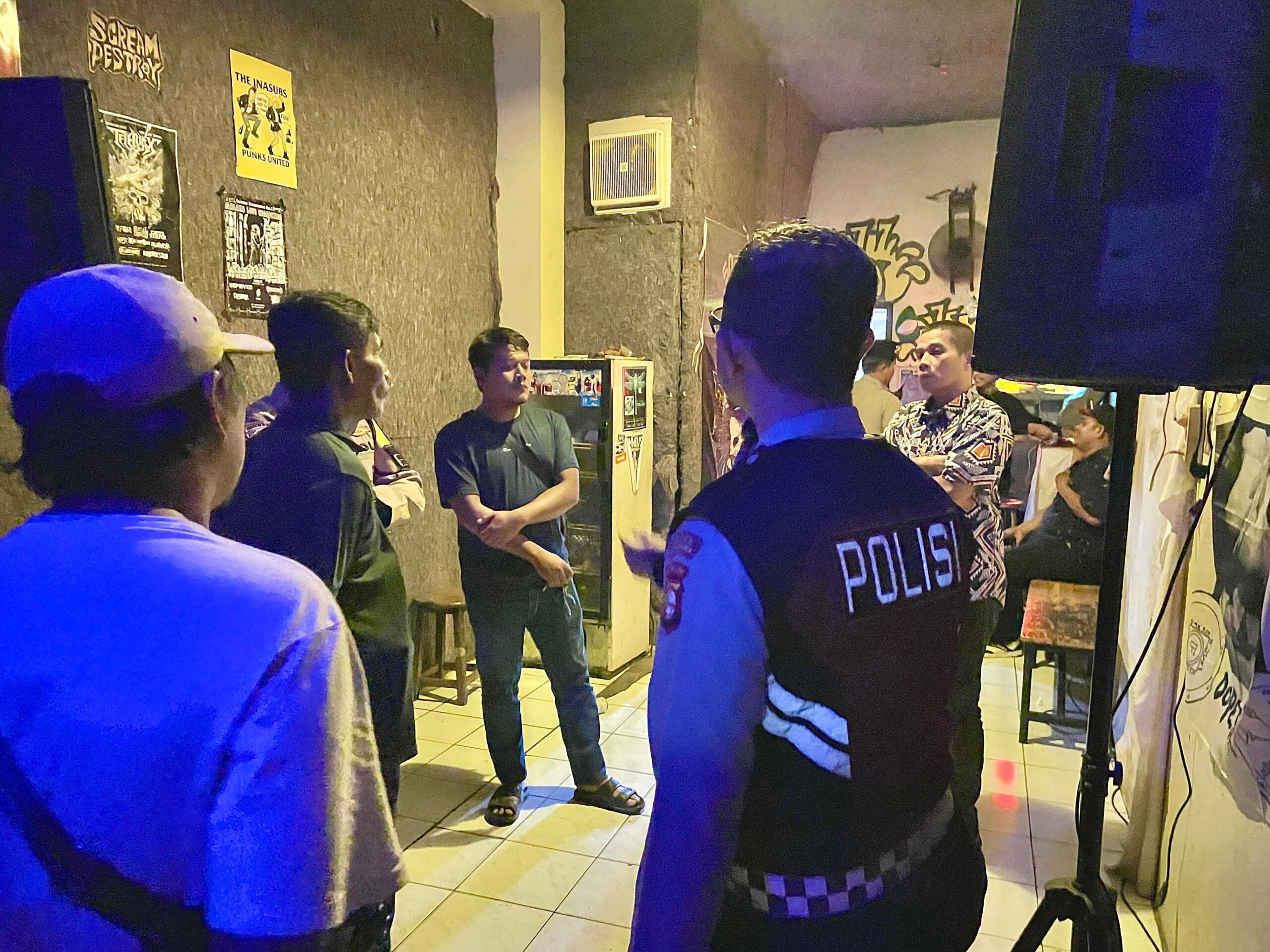 Sekitar pukul 21.50 WIB, petugas melakukan pemeriksaan di lokasi dan bertemu dengan penanggung jawab kegiatan berinisial Aan. Dari hasil pemeriksaan administrasi, diketahui bahwa Nomor Induk Berusaha (NIB) yang diterbitkan oleh pihak kelurahan hanya mencantumkan izin usaha berupa warung kopi dan live musik, bukan sebagai studio kegiatan seperti yang sedang berlangsung saat itu.