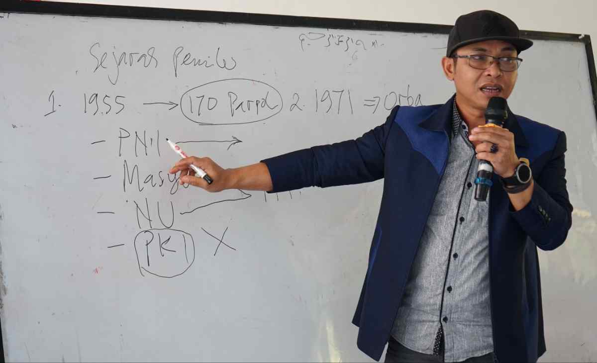 – Ketua KPU Kabupaten Bantaeng Muhammad Saleh membawakan materi Sejarah Pemilu.