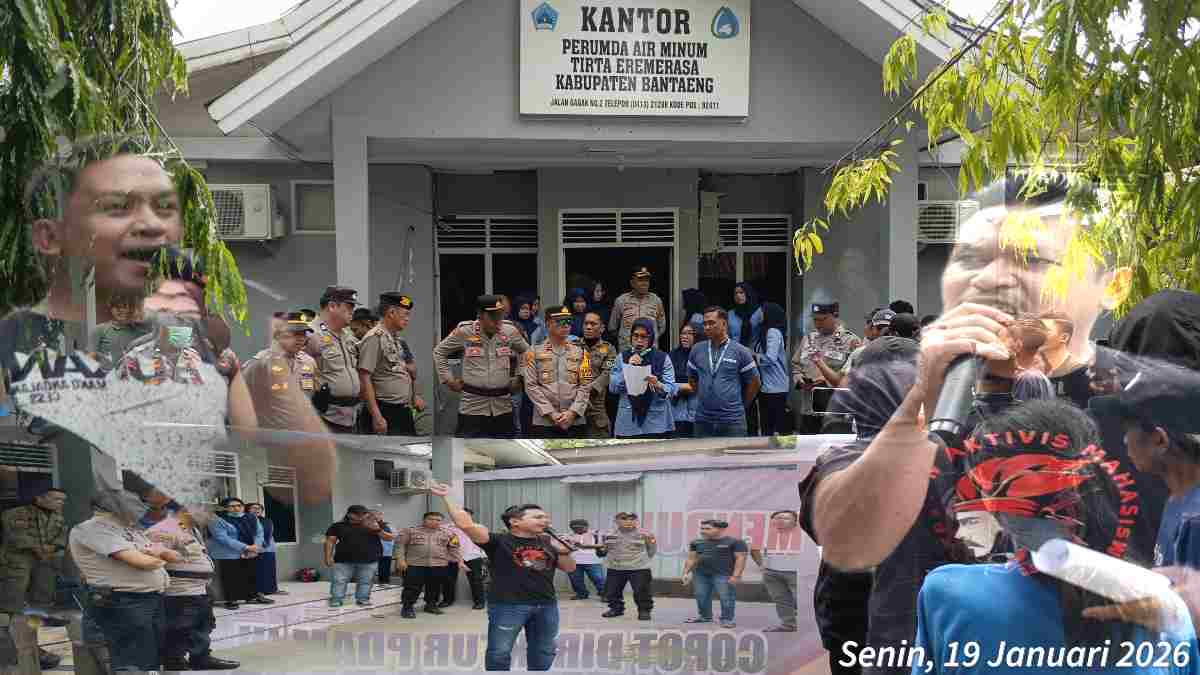 Nasional.id – Gabungan aktivis dan masyarakat yang menamakan dirinya “Pergerakan Demokrasi Aliansi Masyarakat (PDAM) Bantaeng”, menggelar aksi unjuk rasa didepan Kantor PDAM Bantaeng dan didepan Kantor Bupati Bantaeng. Senin (19 Januari 2026).