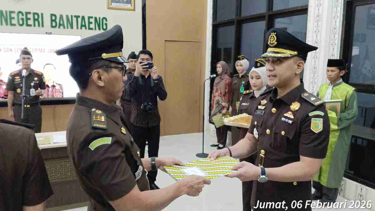 Kepala Kejaksaan Negeri Bantaeng, Hadi Sukma Siregar, S.H., C.N memimpin langsung acara Serah Terima Jabatan (Sertijab) Kepala Seksi Tindak Pidana Khusus serta Pelantikan Kepala Seksi Pemulihan Aset dan Pengelolaan Barang Bukti di Aula Adhyaksa Kantor Kejaksaan Negeri Bantaeng. Jum’at pagi, (06 Februari 2026).