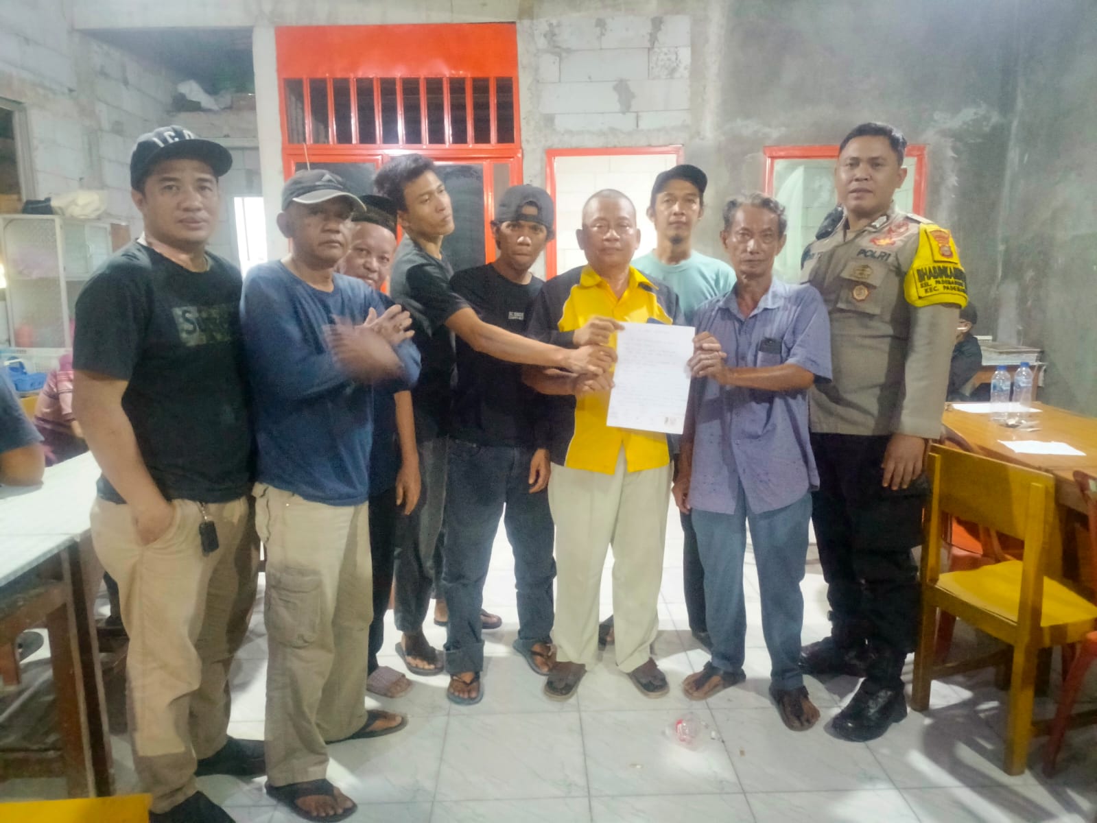 Bhabinkamtibmas Pademangan Barat, Brigadir Atdriyono, memediasi pertemuan yang berlangsung di Kantor Sekretariat RW 15, Jalan Budi Mulia, Pademangan Barat, Jakarta Utara.