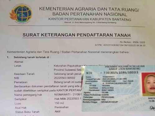 NasionalNasional.id – Seorang perempuan bernama Nismawati dengan alamat di Jalan Sungai Calendu, Kelurahan Malilingi, Kecamatan Bantaeng, Kabupaten Bantaeng, mengabarkan telah kehilangan dokumen penting berupa sertifikat tanah miliknya. Kabar tersebut dia sampaikan ke Media ini pada Selasa (20 Januari 2026). Dia (Nismawati) mengatakan bahwa sertifikat tersebut hilang pada saat banjir melanda Kalimbaung (kawasan tempat tinggalnya) beberapa […]